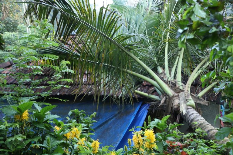 കാട്ടാന വീടിന് മുകളിലേക്ക് തെങ്ങ് മറിച്ചിട്ടു: വീട്ടുകാർ രക്ഷപ്പെട്ടത് തലനാരിഴക്ക്