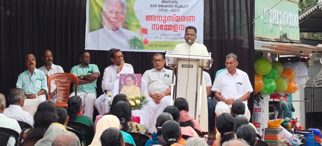 ആർച്ച് ബിഷപ്പ് മാർ ജേക്കബ് തൂങ്കുഴി അനുസ്മരണ സമ്മേളനം സംഘടിപ്പിച്ചു. വാകേരി, സെന്റ് ആന്റണി ചർച്ച് വാകേരി ഇടവകയുടെ നേതൃത്വത്തിൽ വാകേരി ടൗണിൽ അനുസ്മരണ സമ്മേളനം സംഘടിപ്പിച്ചു, ഇടവക വികാരി ഫാദർ ജെയ്സ് പൂതക്കുഴി അധ്യക്ഷത വഹിച്ച സമ്മേളനത്തിൽ, വളവയൽ സെന്റ് സെബാസ്റ്റ്യൻ ചർച്ച് വികാരി ഫാദർ ബാബു മാപ്ലശ്ശേരി മുഖ്യ പ്രഭാഷണം നടത്തി, സണ്ണി സെബാസ്റ്റ്യൻ, ഇ കെ ബാലകൃഷ്ണൻ, ശ്രീനേഷ്, കെ കെ അബൂബക്കർ, ആലിക്കുട്ടി കോട്ടക്കൽ, കെ ആർ ഷാജി, സിജോ പി ജെ, ബാബു കെ എം, ജോൺസൺ എം ജെ തുടങ്ങിയവർ സംസാരിച്ചു