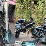 മിനിലോറിയിലിടിച്ച് ബൈക്ക് പൂർണ്ണമായി തകർന്നു; യാത്രികൻ നിസാര പരിക്കോടെ രക്ഷപ്പെട്ടു.